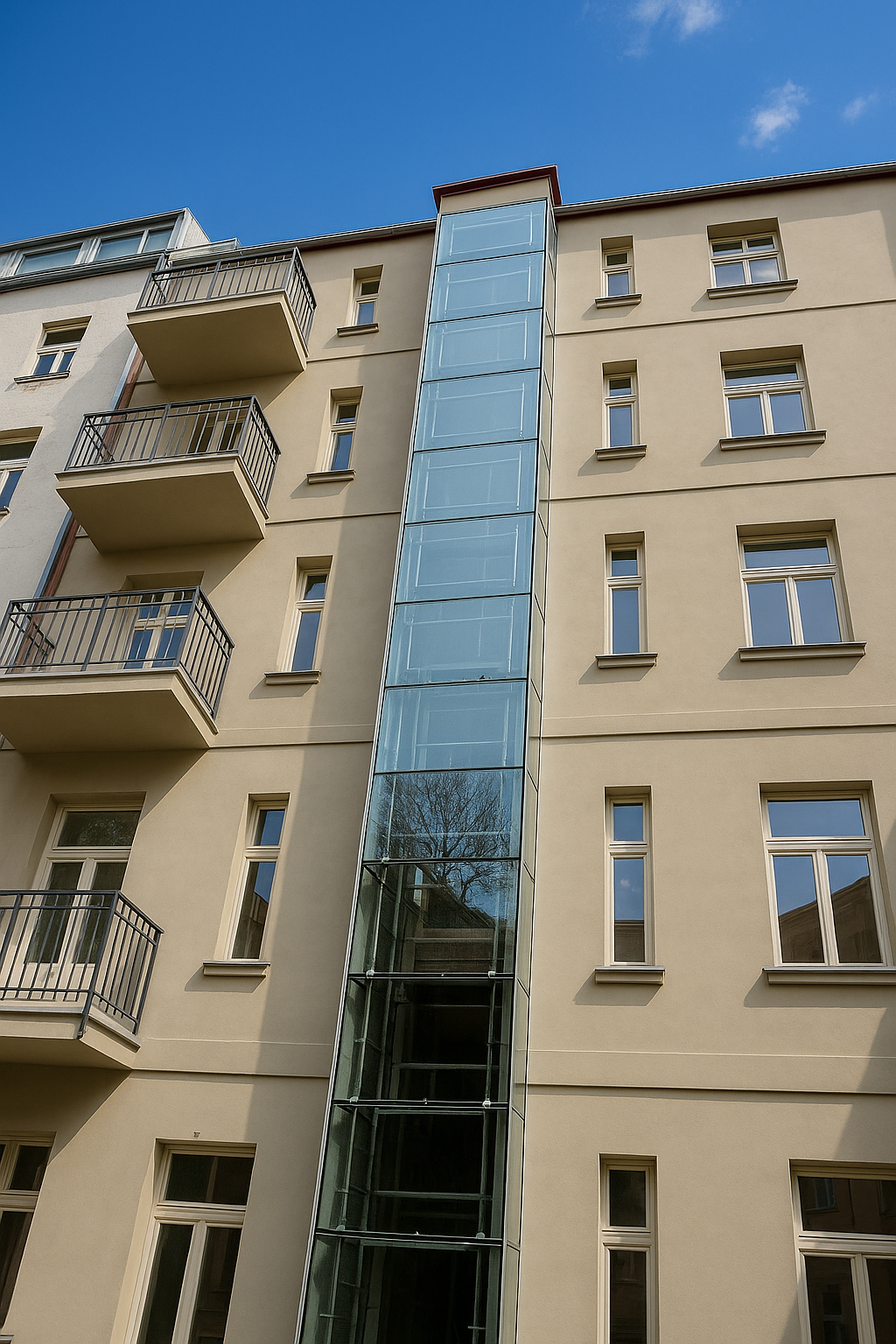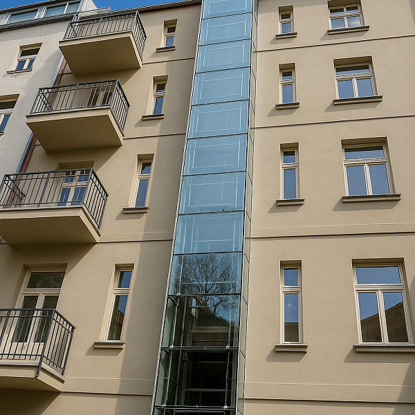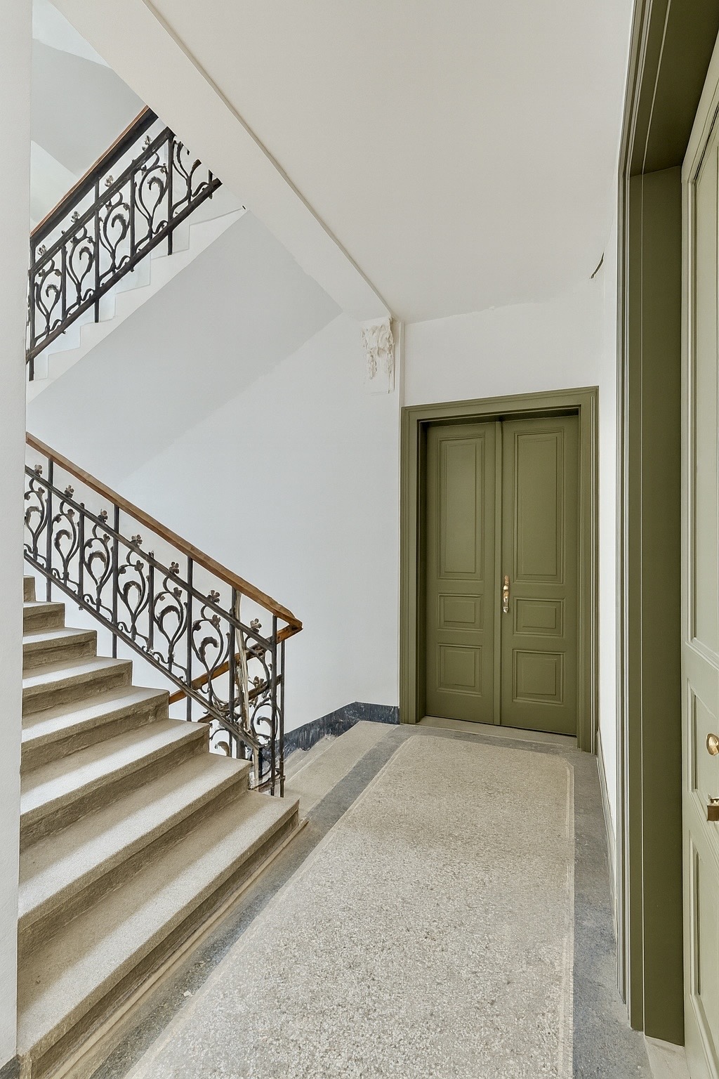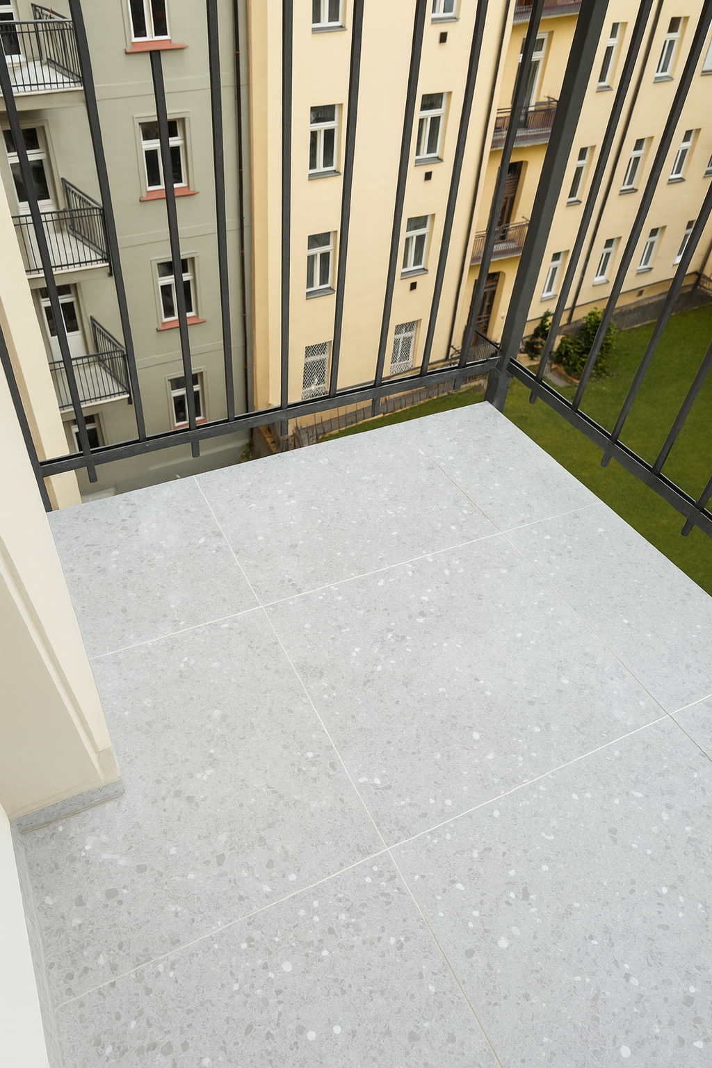 The apartment building on Kodaňská was built around 1890, designed as a brick triple-bay structure, with one underground and five above-ground floors, and an unused attic where 3 new residential units have been constructed. The project will be ready for move-in in autumn 2025. At present, the project is in the more advanced stages of reconstruction, during which the existing layouts have been modified and new apartments have been built into the attic space. The roof reconstruction has been completed, windows have been replaced, new balconies and terraces have been built on the courtyard façade of the building. A new elevator has been installed, along with new electrical wiring and heating systems, and the reconstruction of windows and doors has been completed. The façade of the building has been repaired on both sides.
