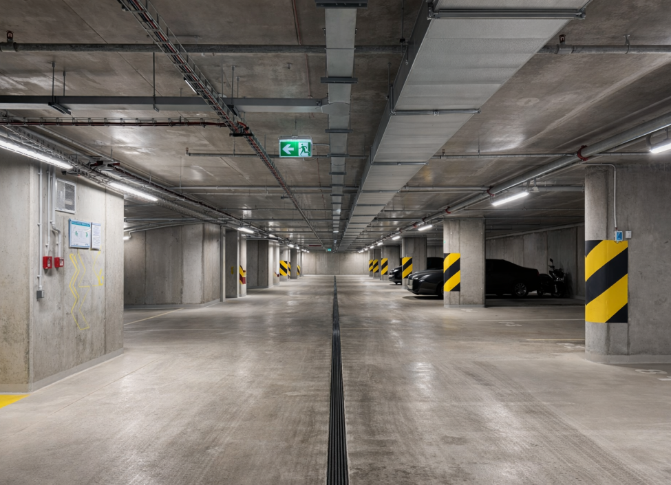 Součástí kupní ceny je sklepní kóje a sklep o velikosti 1,9 m² a 3,8 m². A dále možnost dokoupení až šesti garážových stání včetně jedné dobíjecí stanice pro elektromobil.