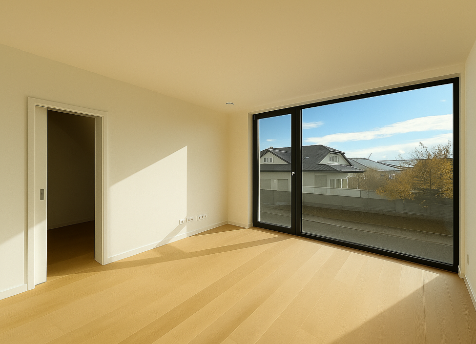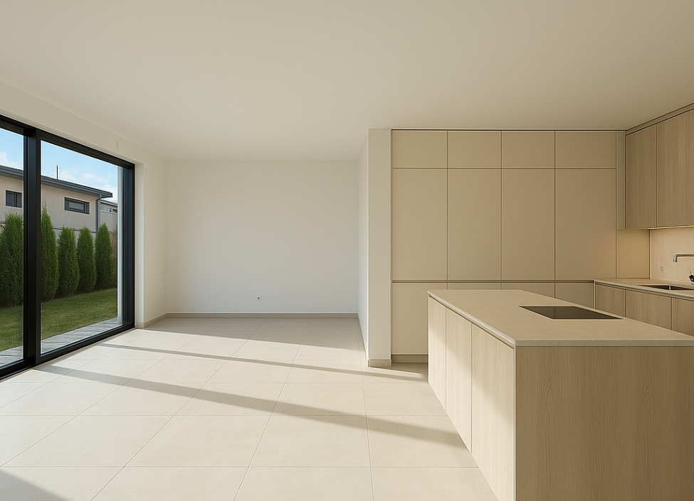 Do domu vstoupíte elegantními hliníkovými dveřmi v antracitu, sladěnými s okny s trojskly a s přípravou na instalaci elektrických interiérových žaluzií. Interiér doplňují bezfalcové dveře s magnetickými zámky značky Vekra, které vytvářejí čistou moderní linii. V přízemí vás provede velkoformátová dlažba, zatímco v patře zahřeje dřevěná podlaha dub Harmony. Teplo i letní chlazení zajišťuje tepelné čerpadlo Stiebel Eltron, v každém pokoji doplněné vlastním termostatem umožňujícím individuální nastavení teploty. Samozřejmostí je podlahové vytápění a rekuperace.