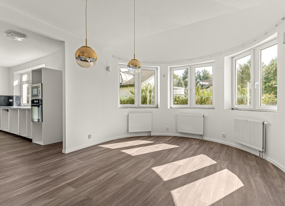 Dům prošel rekonstrukcí celého přízemí a částečnou rekonstrukcí 1. patra, kde byla ponechána jedna ložnice, šatna a 2 koupelny ve stavu Shell&Core. Nový majitel tak může zvolit materiály i styl, které mu budou nejvíce vyhovovat a přizpůsobit si prostředí přesně podle svého vkusu.