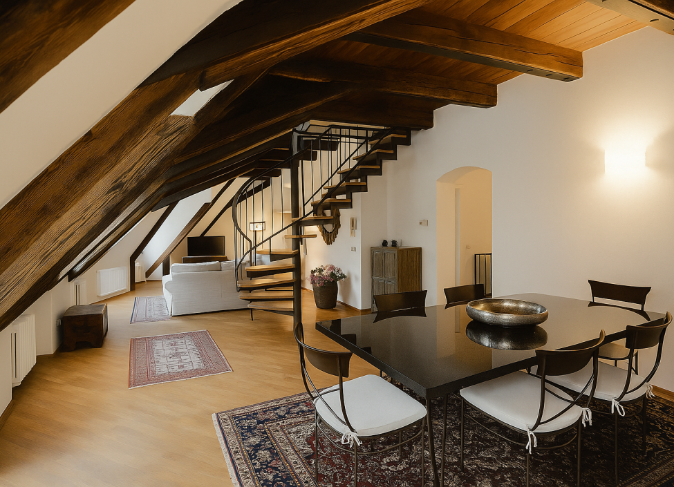 Luxusní mezonet na pronájem na Malé Straně v barokním činžovním domě  s výtahem a působivým nádvořím s kašnou, se nachází jen pár kroků od Karlova mostu a Malostranské mostecké věže. Díky své jedinečné atmosféře nabízí bydlení s nezaměnitelným géniem loci pro klienty, kteří nechtějí řešit kompromisy vysněného bydlení. Byt byl nadstandardně zrekonstruován s ohledem na původní prvky.